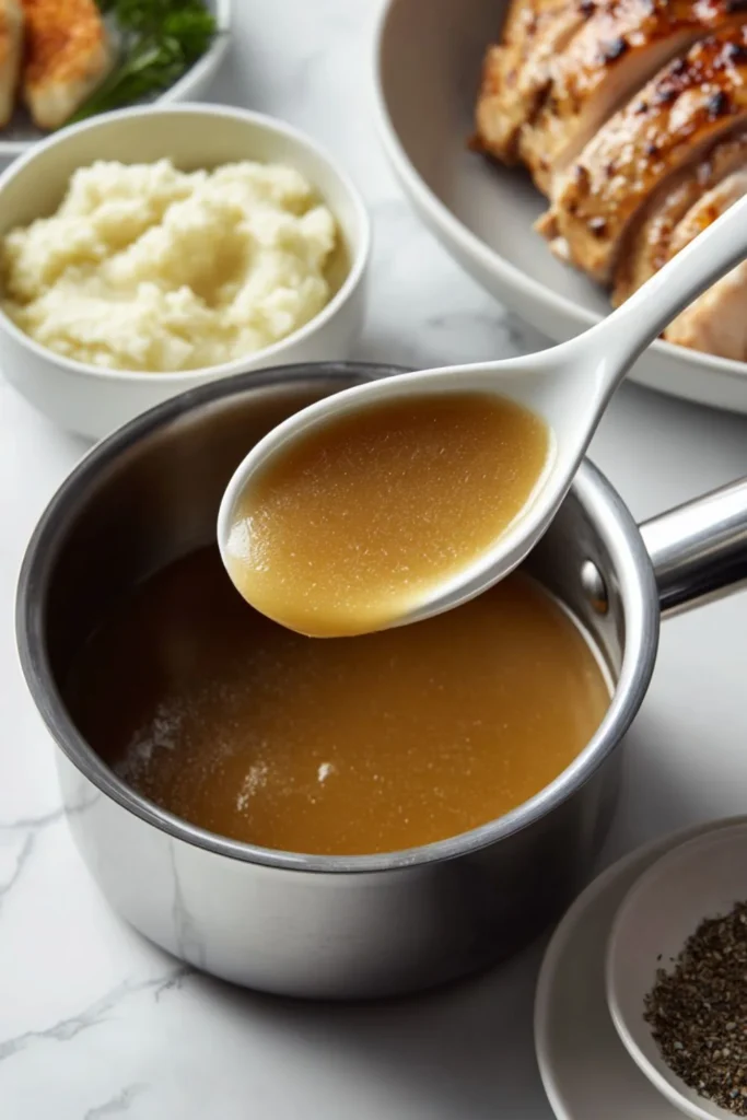 • Broth Concentrates: Using concentrates (paste) instead of boxed broth provides a much deeper, richer flavor that mimics the taste of pan drippings. Using a mix of beef and chicken concentrates creates a well-rounded “brown gravy” flavor.