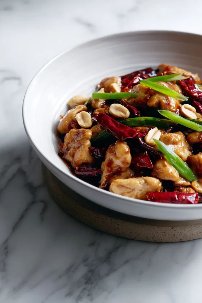 A better-than-takeout keto stir-fry featuring juicy chicken, spicy chilies, and peanuts in a savory, sticky sauce without the sugar.
